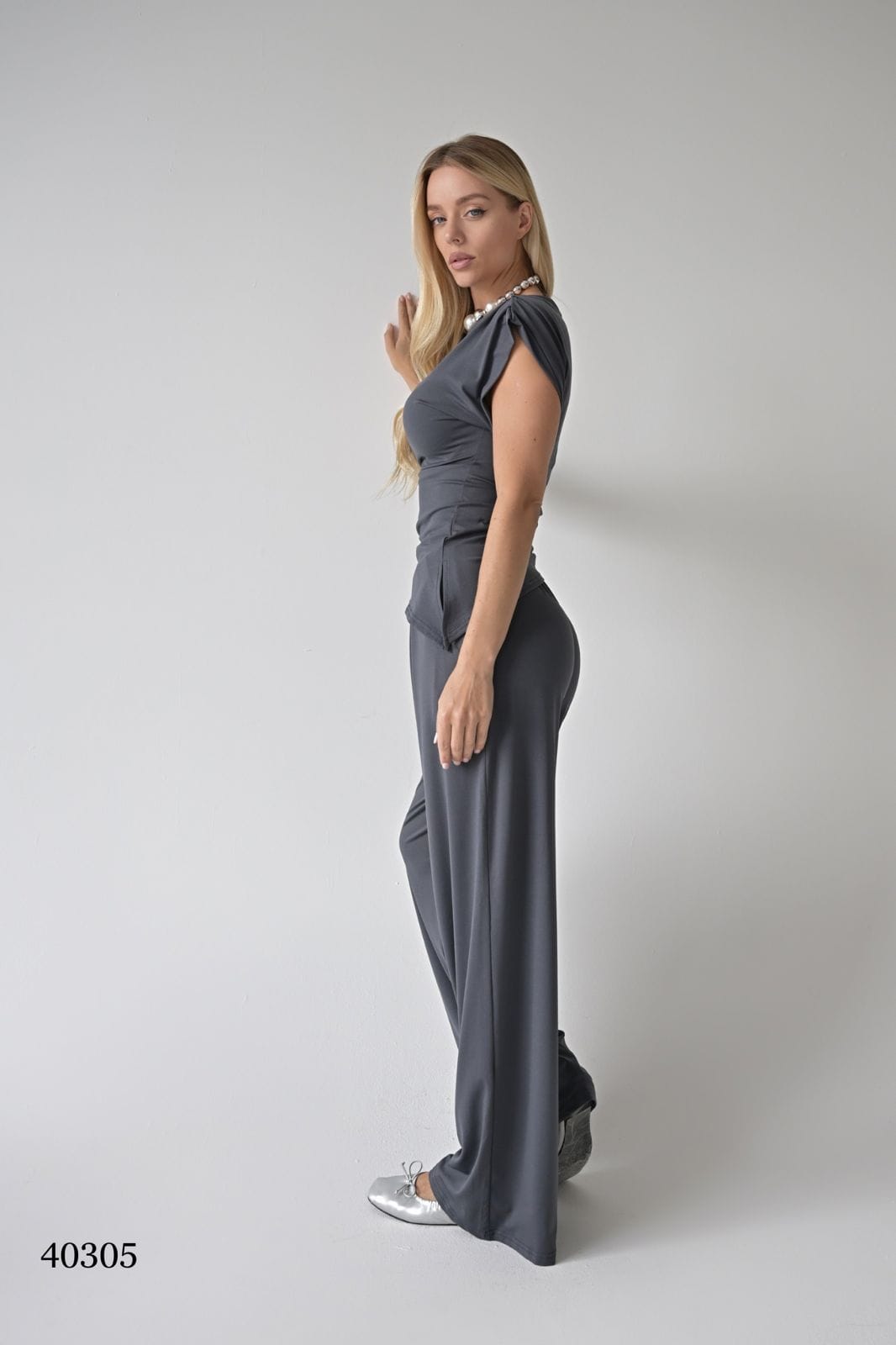 Комплект: асимметричная блуза + брюки на резинке Базовый сет в актуальном крое. Блуза асимметричной формы — один из акцентных элементов: открытая линия плеча, мягкая посадка и драпировка придают образу выразительность. Брюки с резинкой на талии и боковыми карманами — идеальны для повседневного комфорта. Материал — приятный на ощупь трикотаж, эластичный и плотный. Универсальный вариант на сезон, подходит для прогулок, офиса и капсульного гардероба.