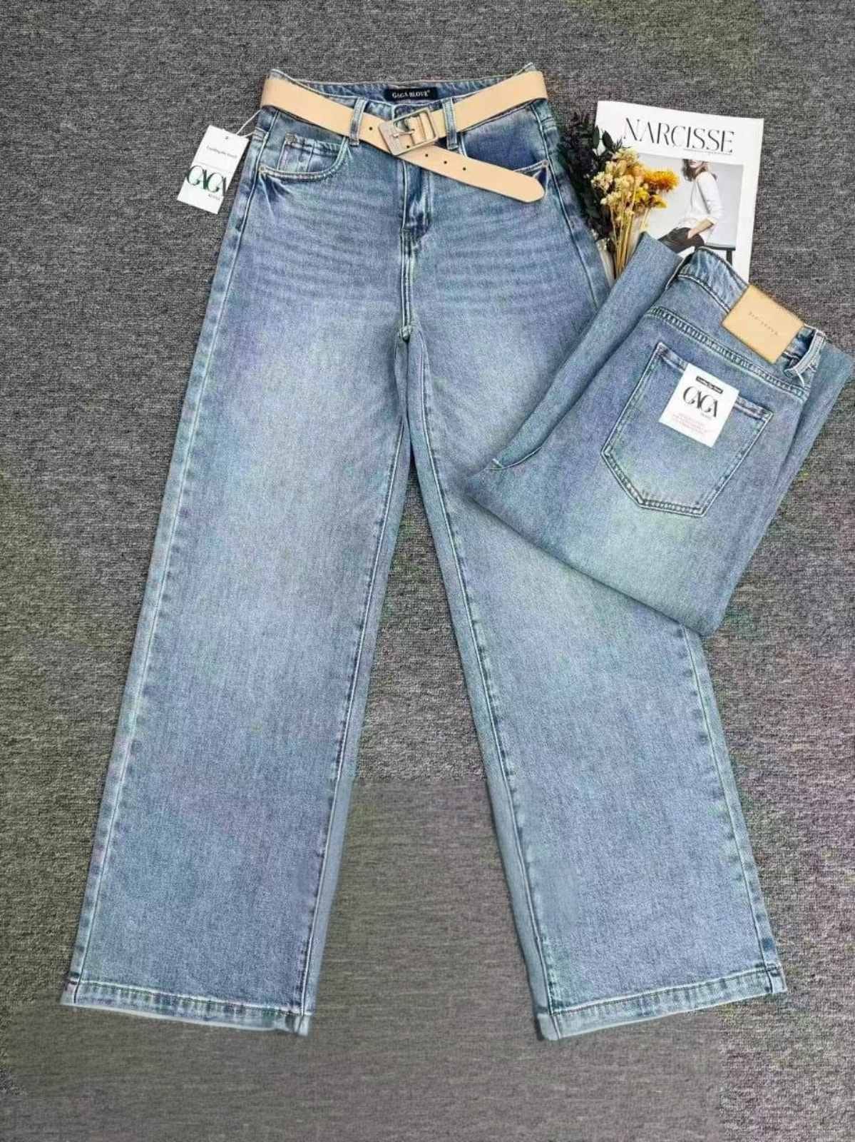 Джинсовые брюки прямого широкого кроя с бежевым ремнём — размеры 28–33 W (46–54 RU) GAGA
