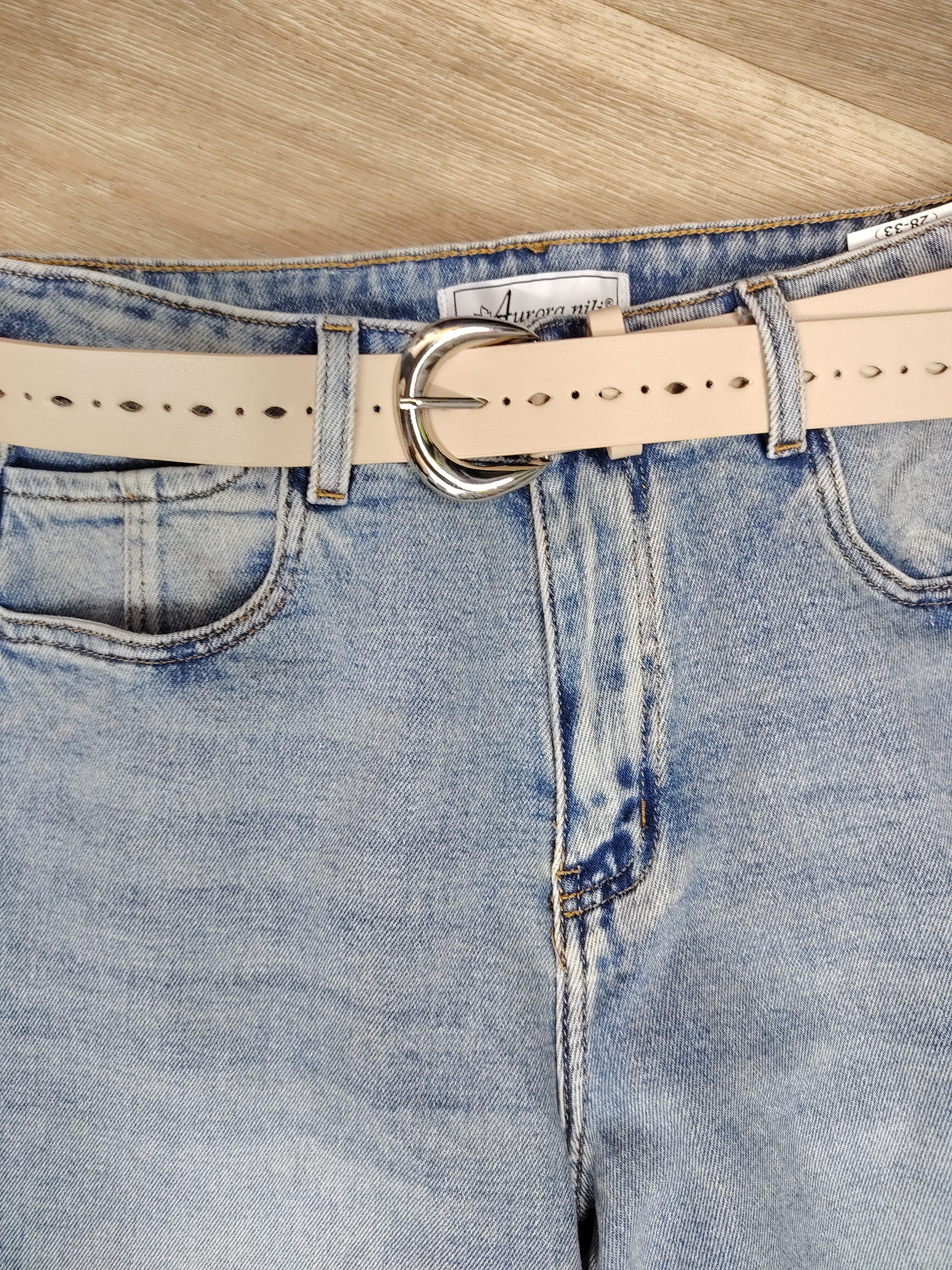 ✅ Перфорированный пояс в комплекте — стильный аксессуар, который подчёркивает талию и завершает образ. Пояс съёмный, можно носить джинсы и без него.