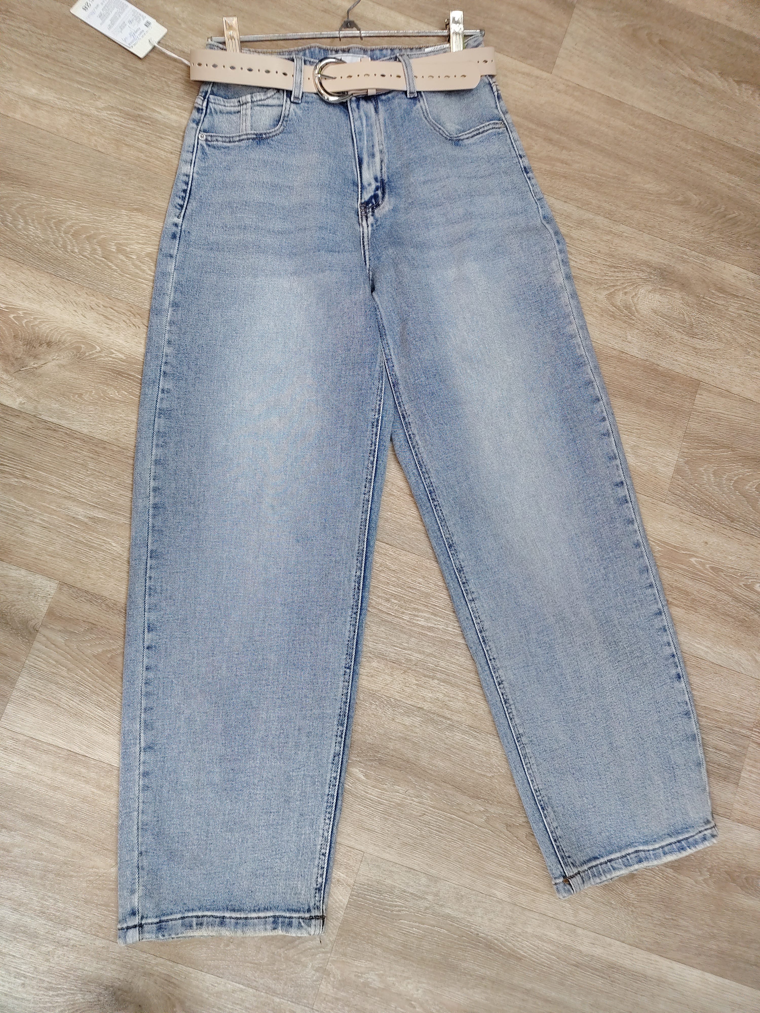 Эти джинсы — идеальный баланс между комфортом и стилем. Мягкий, приятный к телу деним, свободный крой и универсальный светло-голубой оттенок с аккуратными потёртостями делают их настоящей находкой для повседневного гардероба. В комплекте идёт перфорированный пояс, который добавляет образу завершённость и позволяет регулировать посадку.