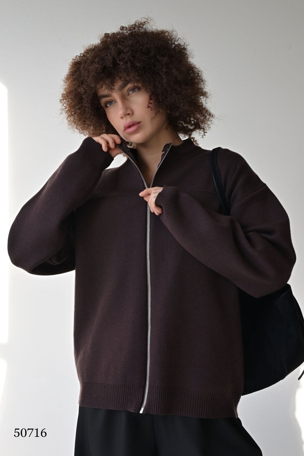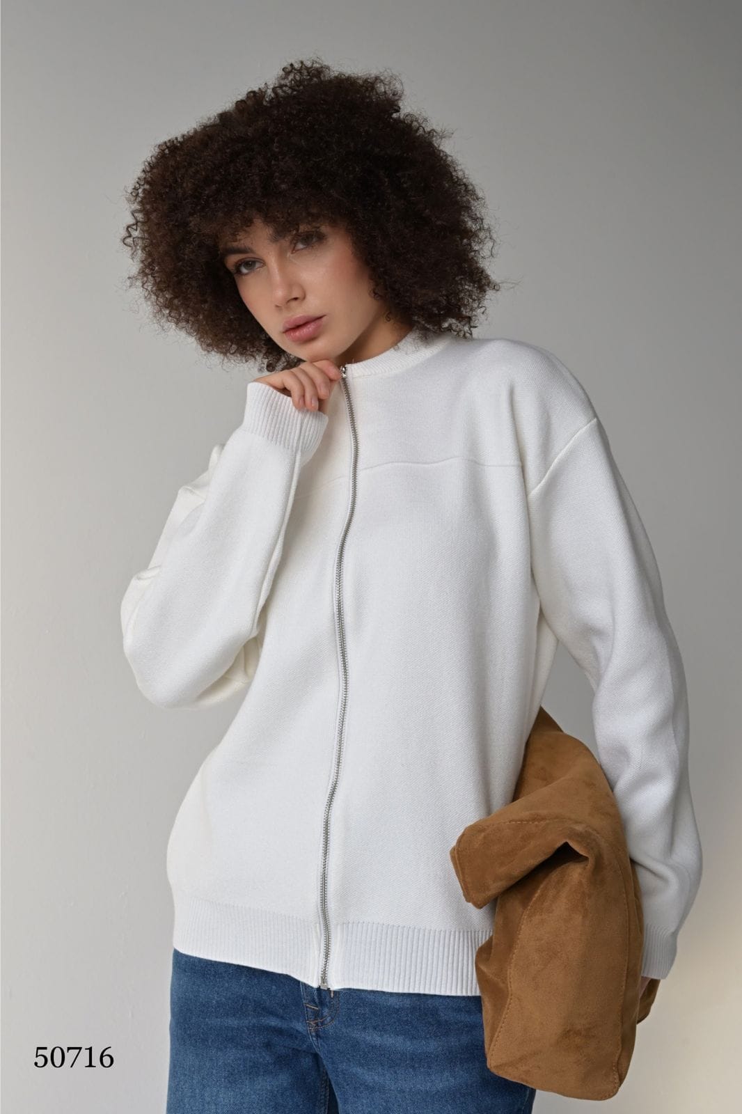 Стильный кардиган свободного кроя — уютное решение для повседневного образа Застёжка на металлической молнии — удобно и современно