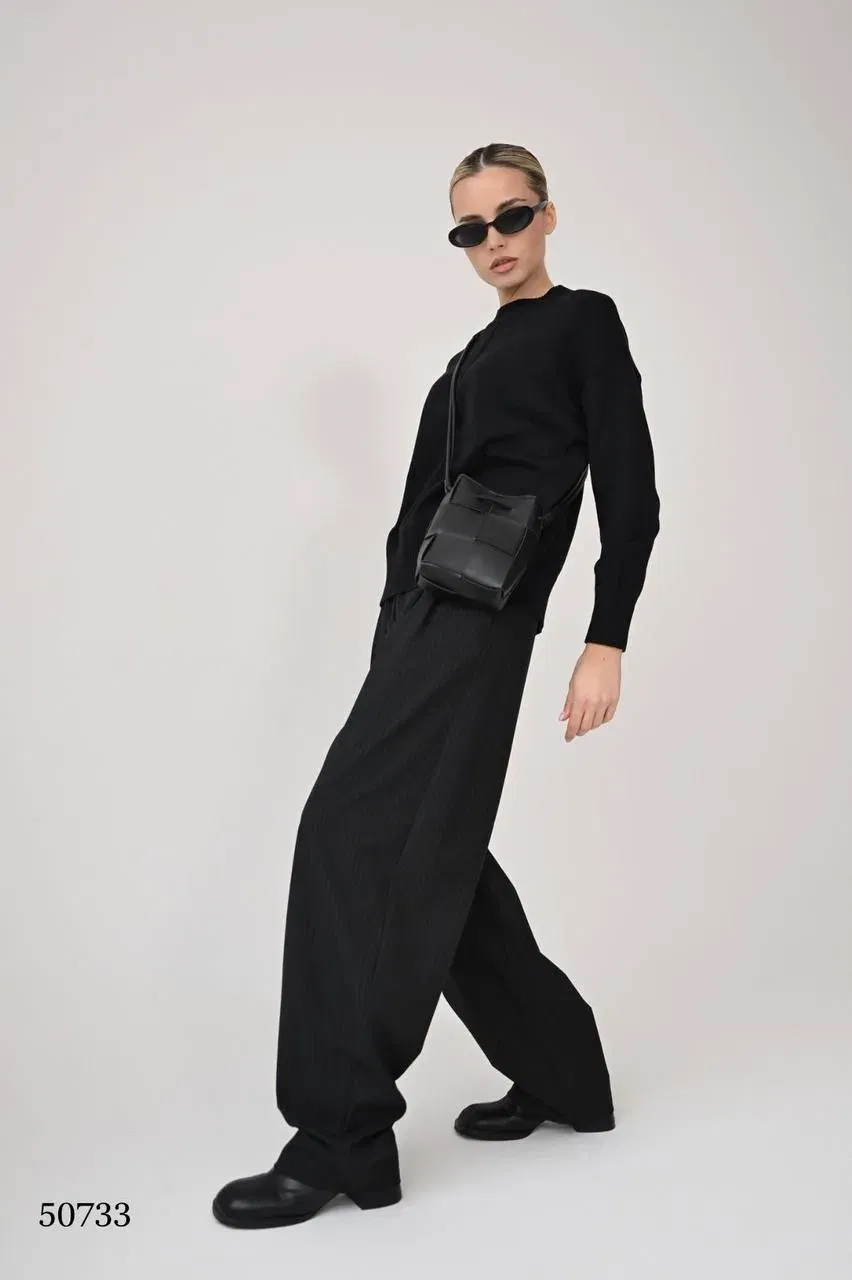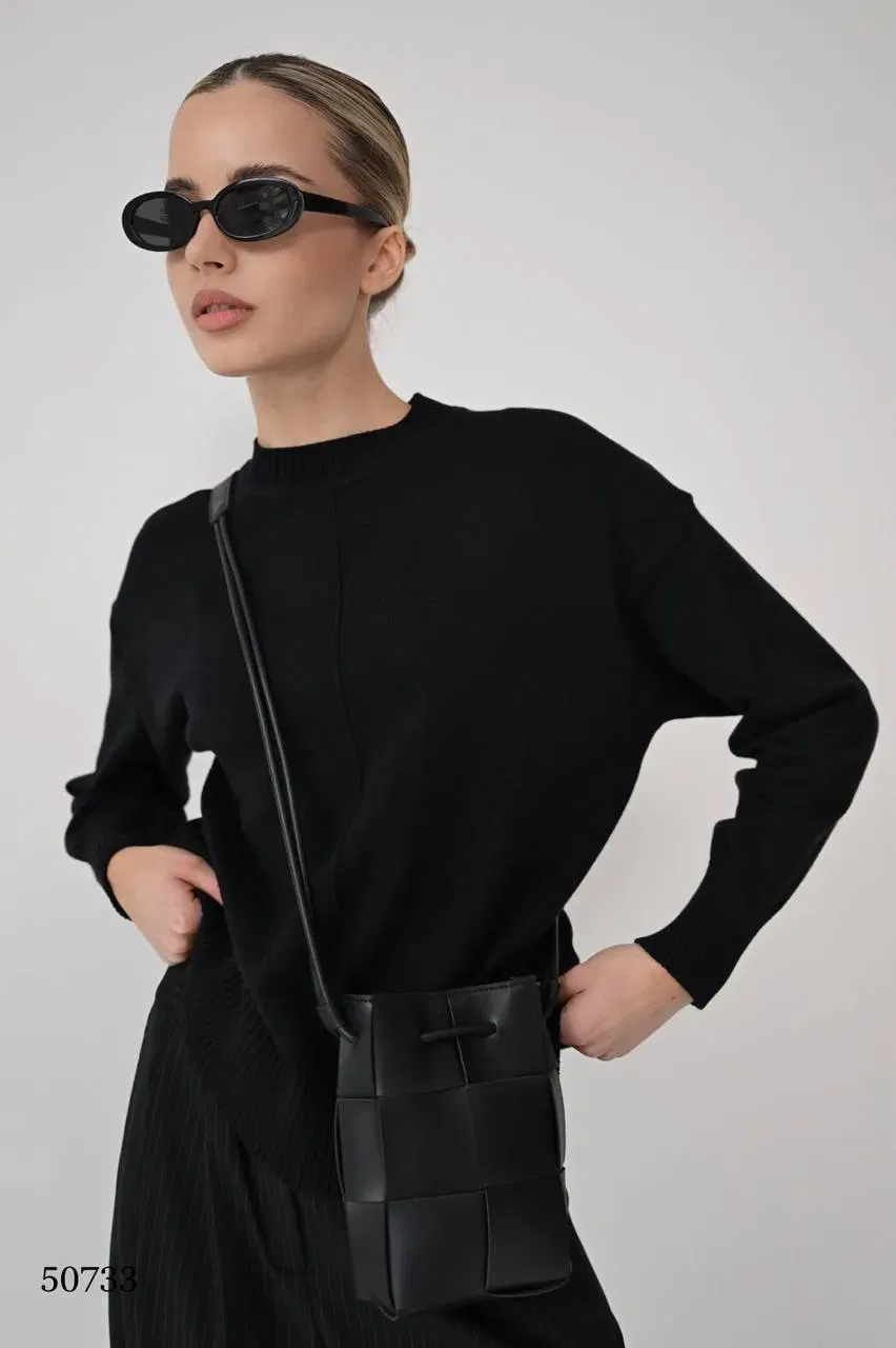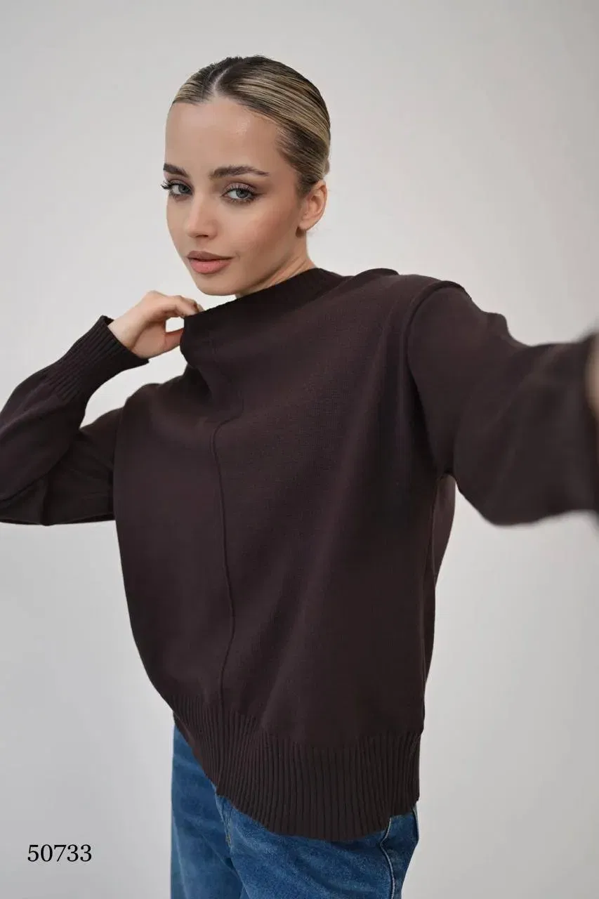 Классический вязаный свитер свободного кроя с круглым воротником на резинке MISS DIVA