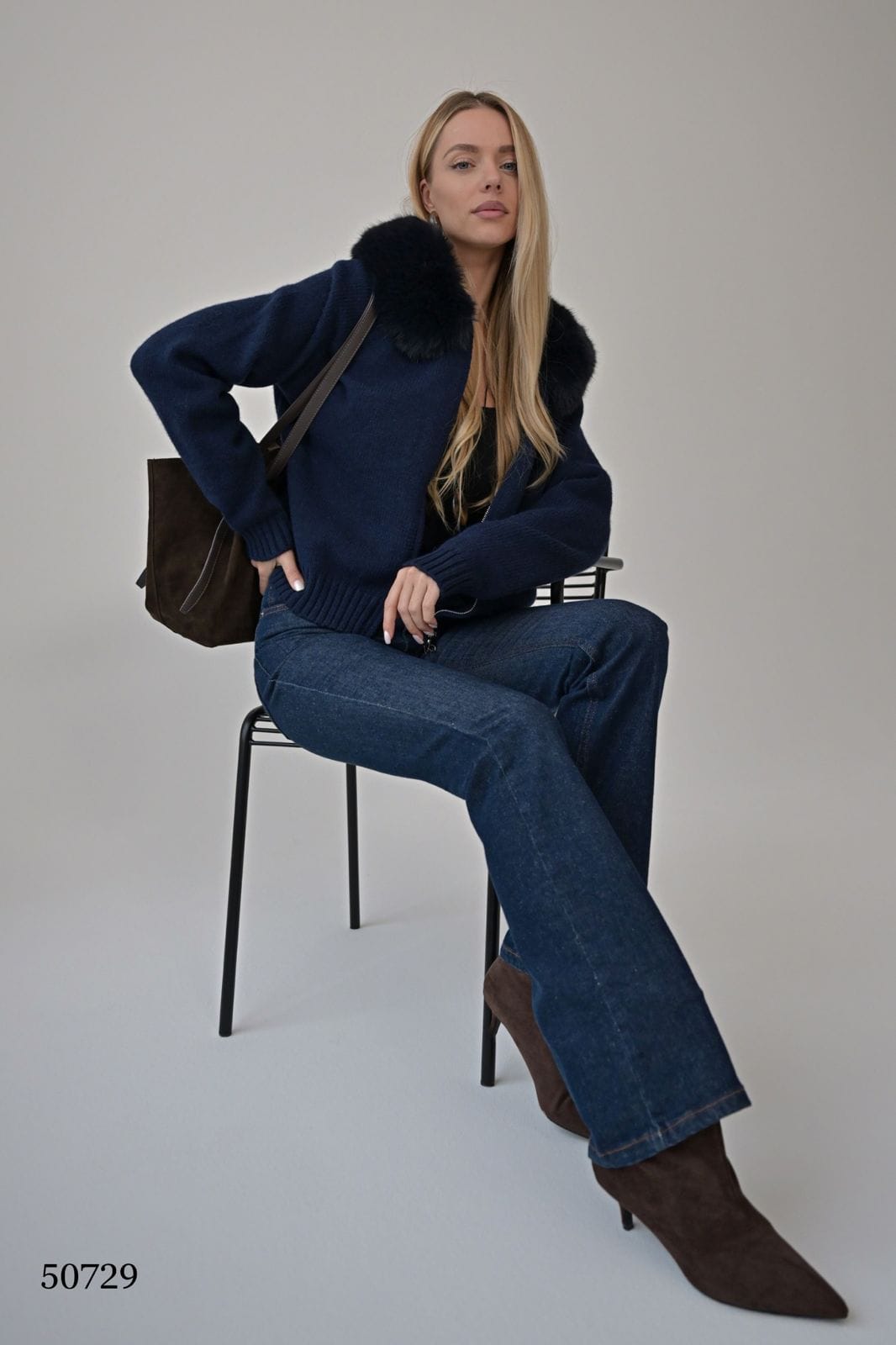 Тёплая кофта с капюшоном, украшенным пушистой меховой отделкой — уют и стиль в одном образе