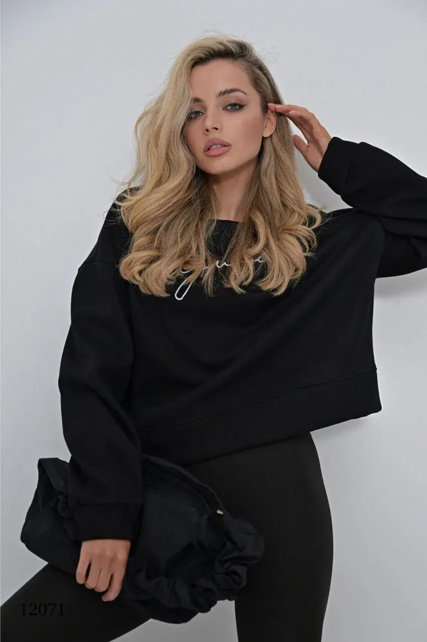 Тёплая кофта с плюшевым ворсом внутри. Свободный крой, удлинённые рукава с манжетами. Элегантная белая вышивка спереди. Для уютных зимних образов. ✅ Бесплатная доставка по Беларуси.