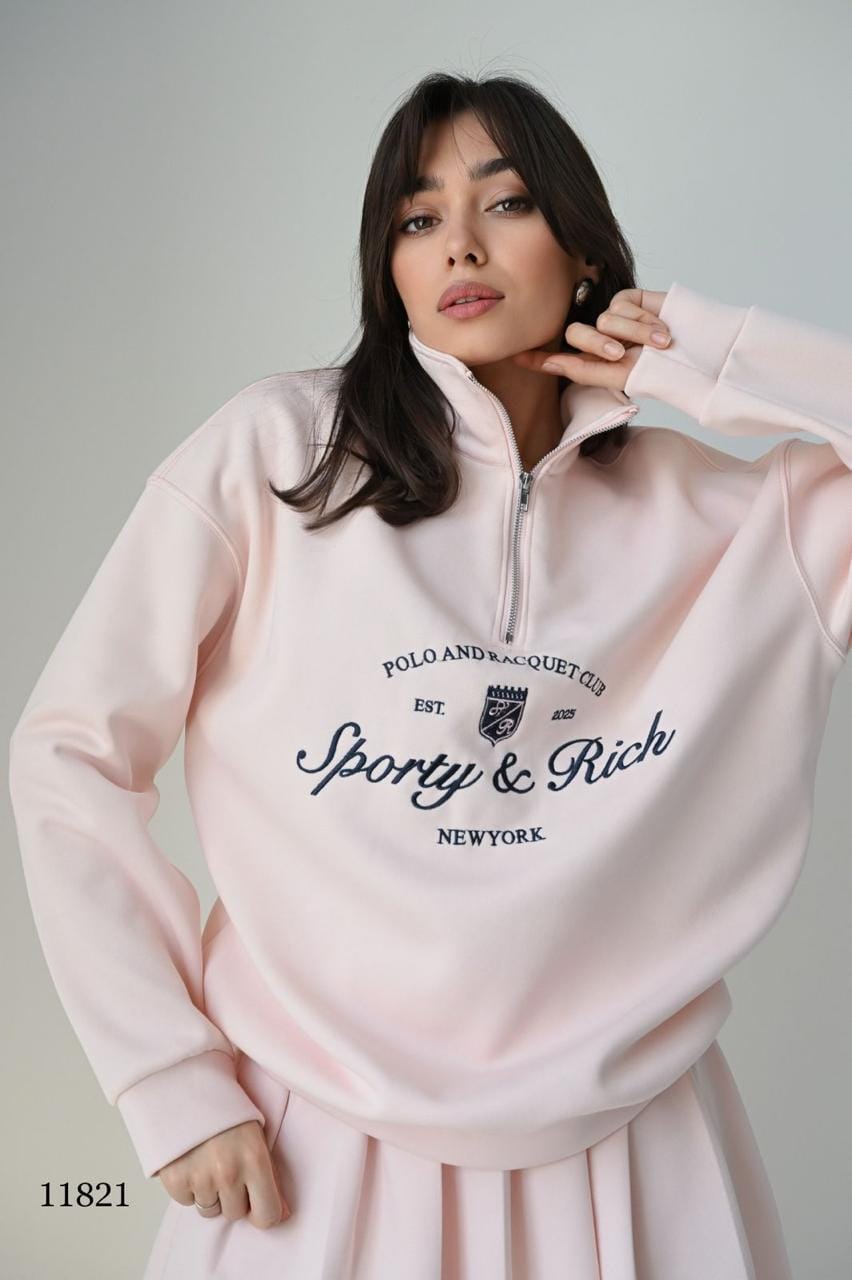 • Свитшот — свободный крой, длинный рукав, принт “PINK AND BACON STUDIO SPORTY & RICH NEW YORK”