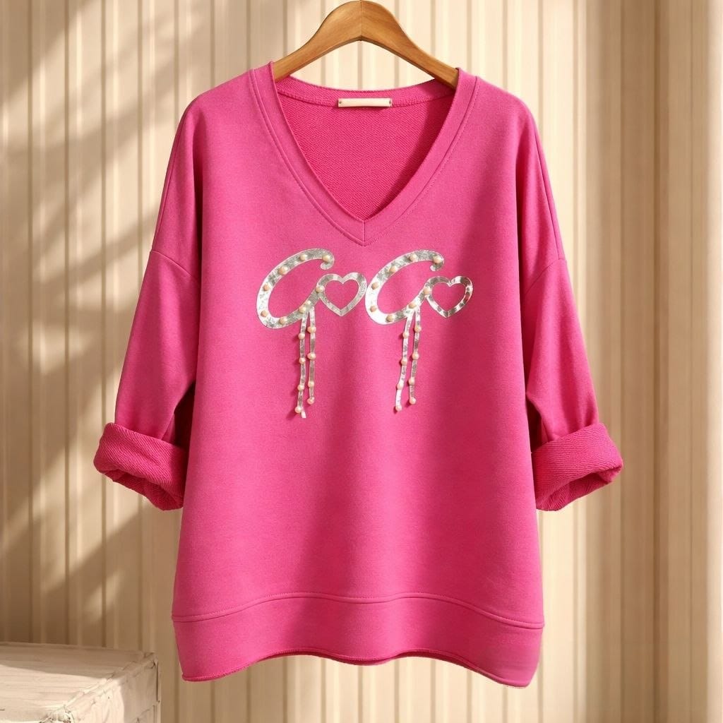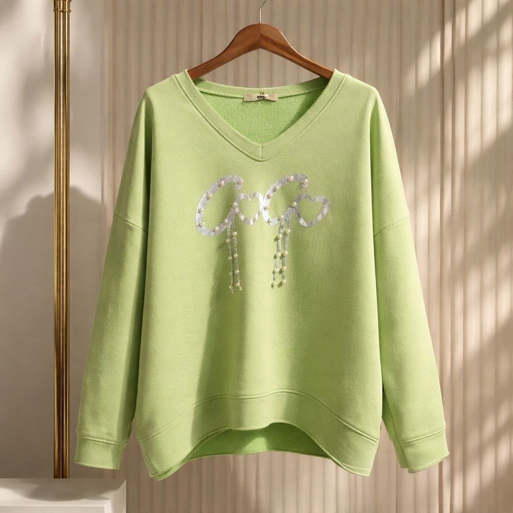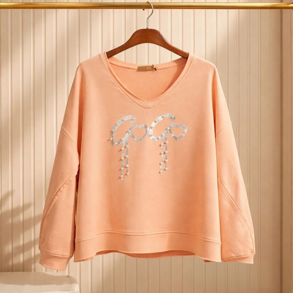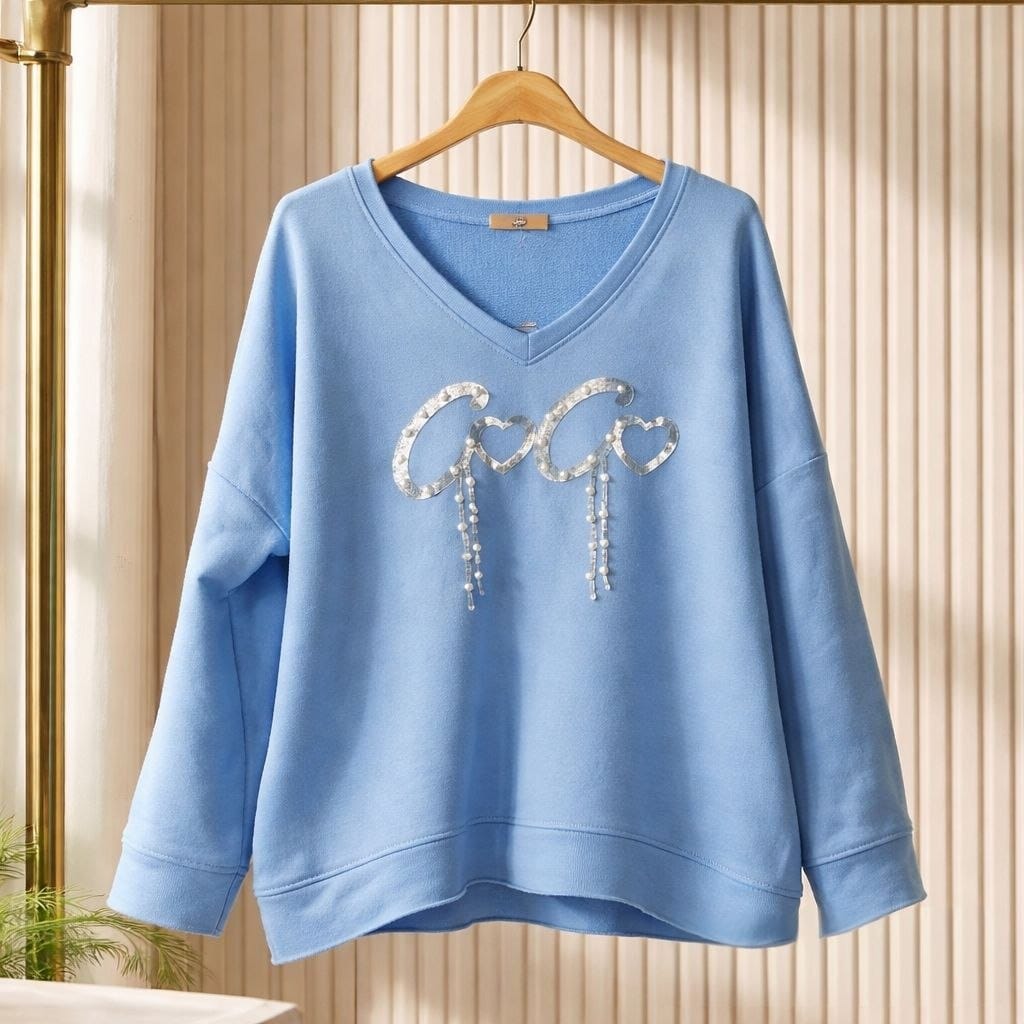 Свитшот с V-образным вырезом и блестящей аппликацией