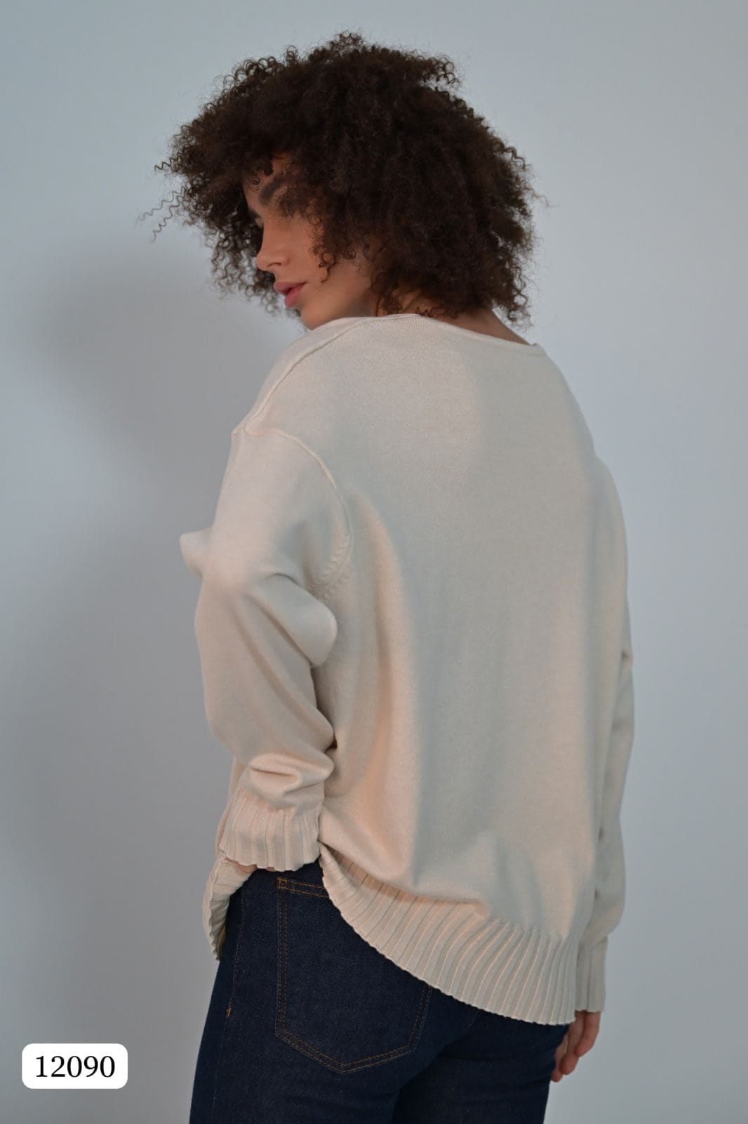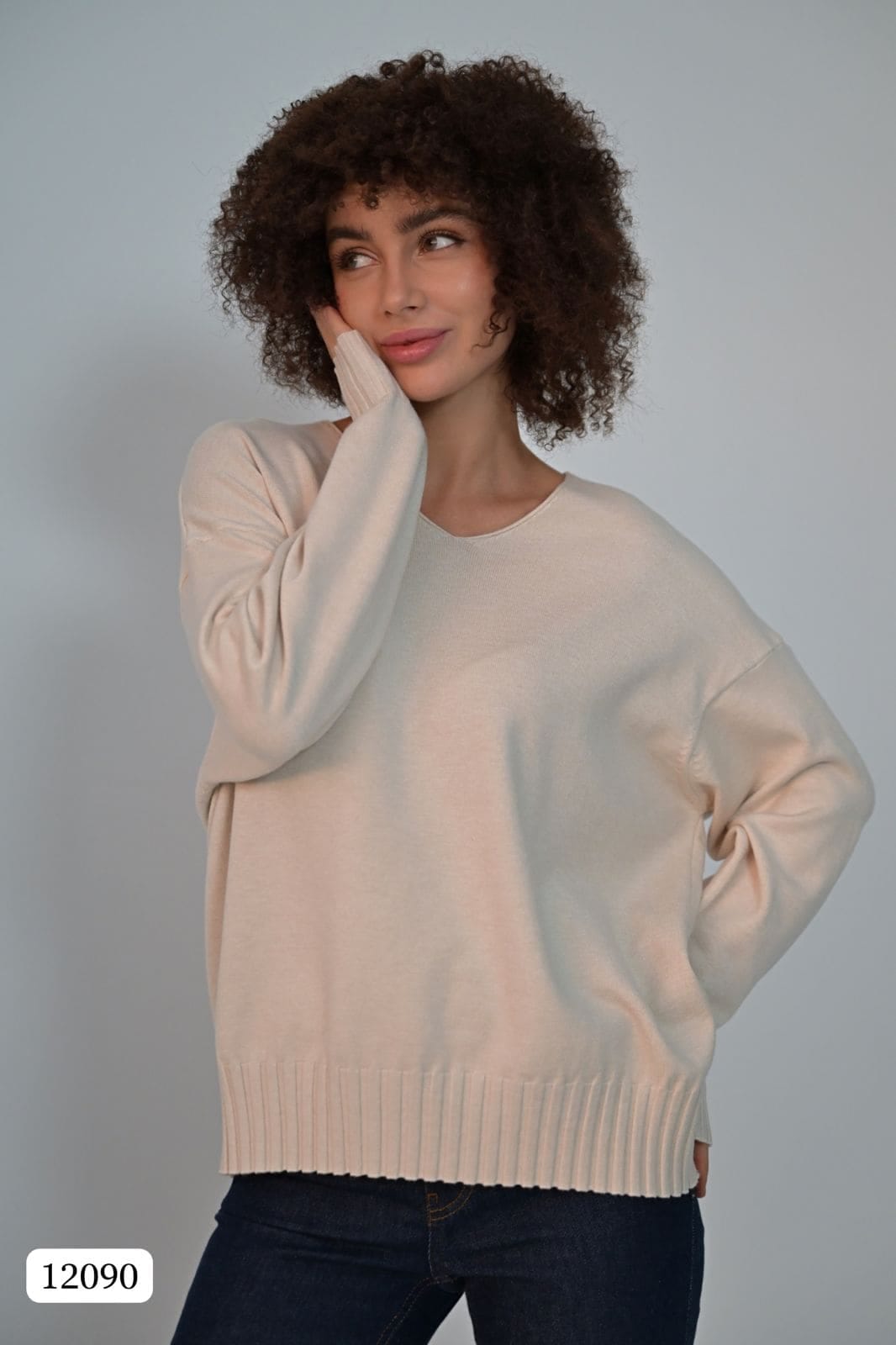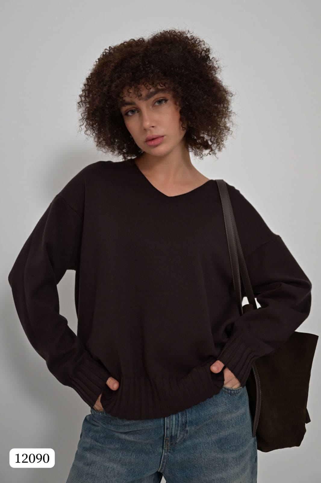 Этот элегантный свитер свободного кроя создан для тех, кто ценит комфорт и стиль в повседневной жизни. Его главная особенность — удобный V-образный вырез, который визуально вытягивает силуэт, делая его более изящным, и добавляет образу лёгкую неформальную элегантность.