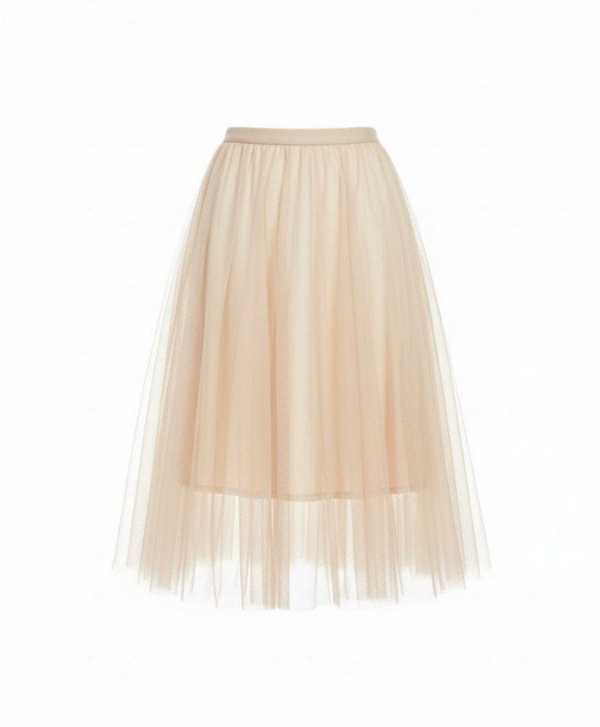 Юбка из многослойного фатина длиной до щиколотки.