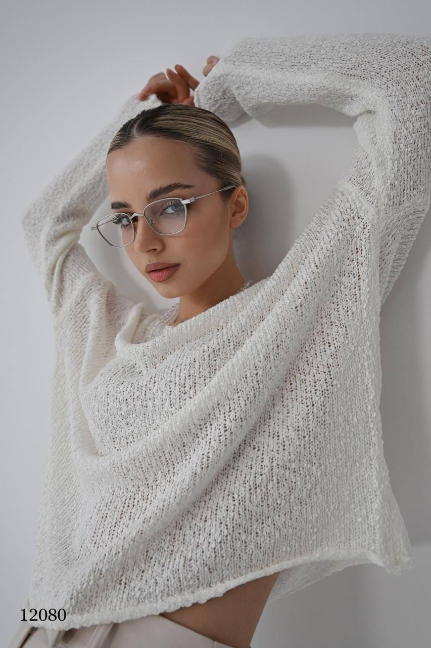 Модель выполнена из мягкой, слегка ажурной пряжи, которая создаёт уютный и непринуждённый образ.