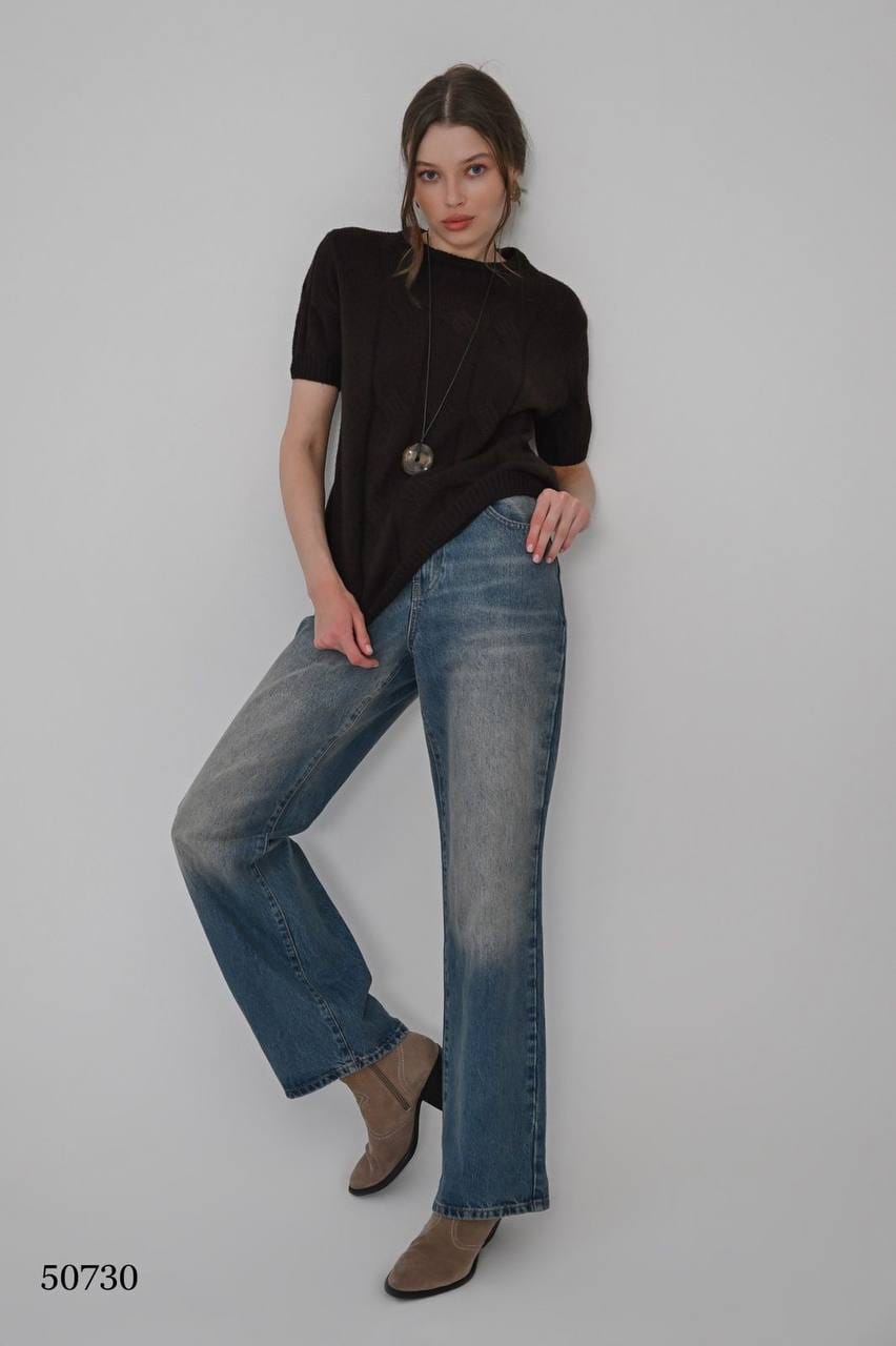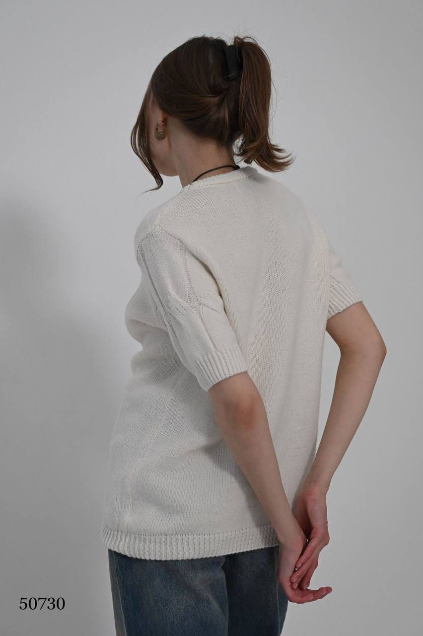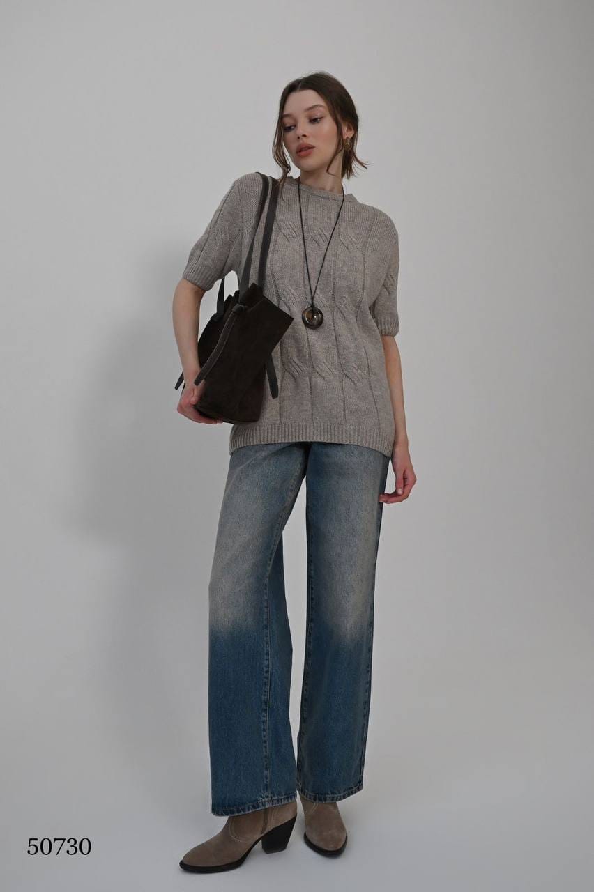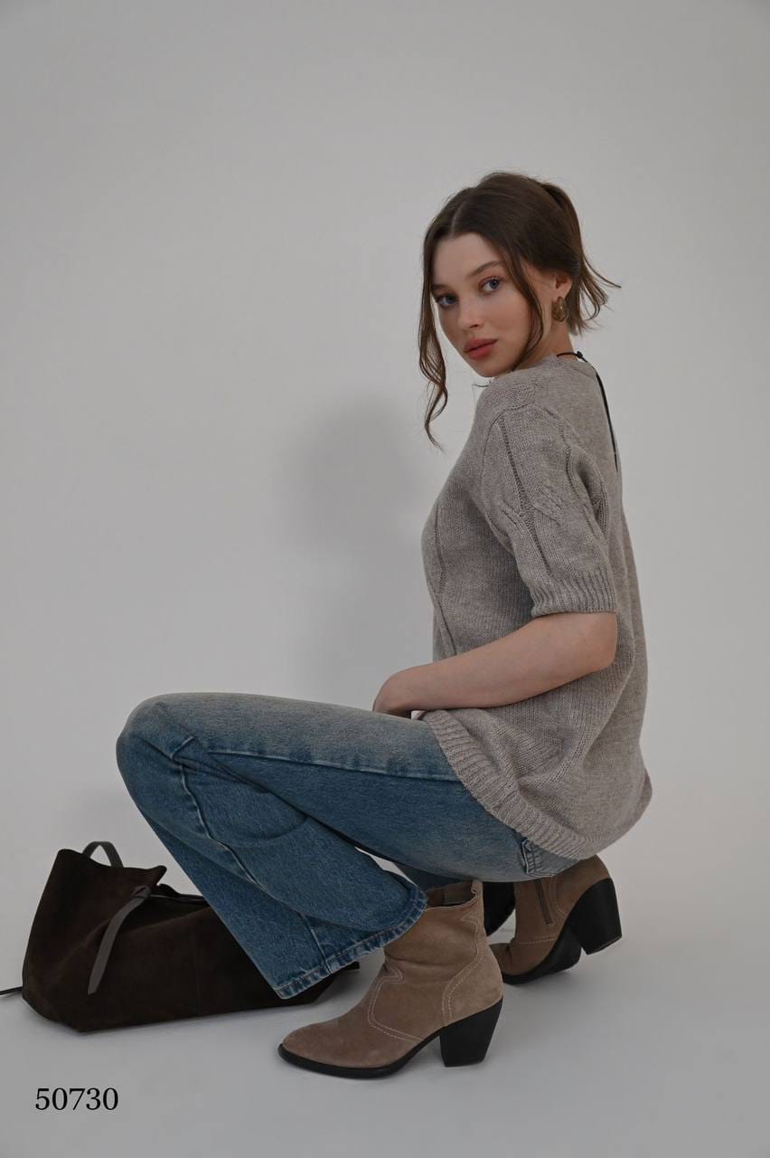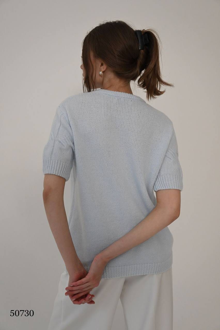 Женский красный джемпер с фактурной вязкой и коротким рукавом